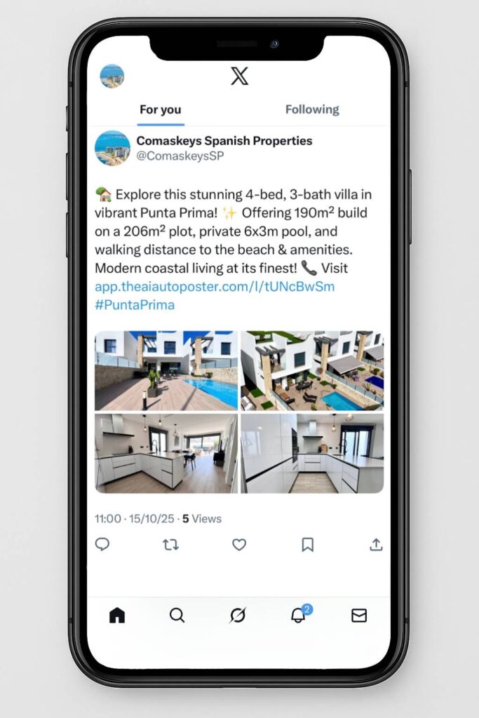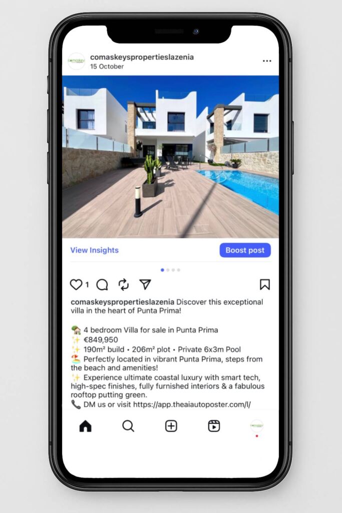 The AI Autoposter is a smart tool that automatically creates and publishes property posts for estate agents. Just paste the link to your listing — and it handles the rest, from photos to captions to scheduled posts. Simple, fast, and designed to save you hours.